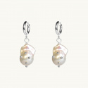 Örhänge i form av en sötvattenspärla med små kulor på, hängandes på en hoop.