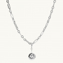 En trendig, tjockare kedja med ovala, ihåliga ringar som hakar i varandra tillsammans med ett vackert mynt med oregelbunden yta.