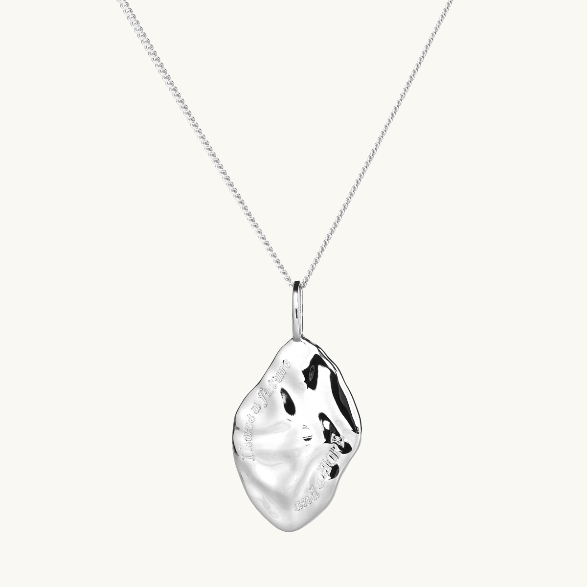 Som en sten formad av havet bär Pebble spår av tid, kraft och stillhet. Berlockens mjuka, organiska form påminner om hur livet slipar oss – och hur något vackert kan växa fram ur det enkla. Ingraverat på framsidan står orden: "I have a future and a HOPE" – en påminnelse att bära nära hjärtat. En stilla men stark påminnelse om att det som ligger framför oss bär löften, även när vägen känns otydlig.