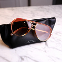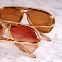 Ge din look en uppgradering med dessa trendiga pilotinspirerade solglasögon. Det perfekta valet till både vardags och semestern, med sin champagnefärgade transparenta färg, den röda linjen längs med bågen och tonade glas.