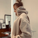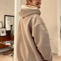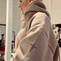 Beige hoodie med stadig luva. Texten TRUTH MERCY är broderat i svart på vänster axel. Texten bildar ett kors, genom att Truth går vertikalt och Mercy horisontellt. Borstad insida som gör den extra skön.